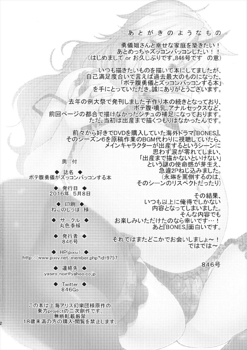 ボテ腹勇儀がズッコンバッコンする本