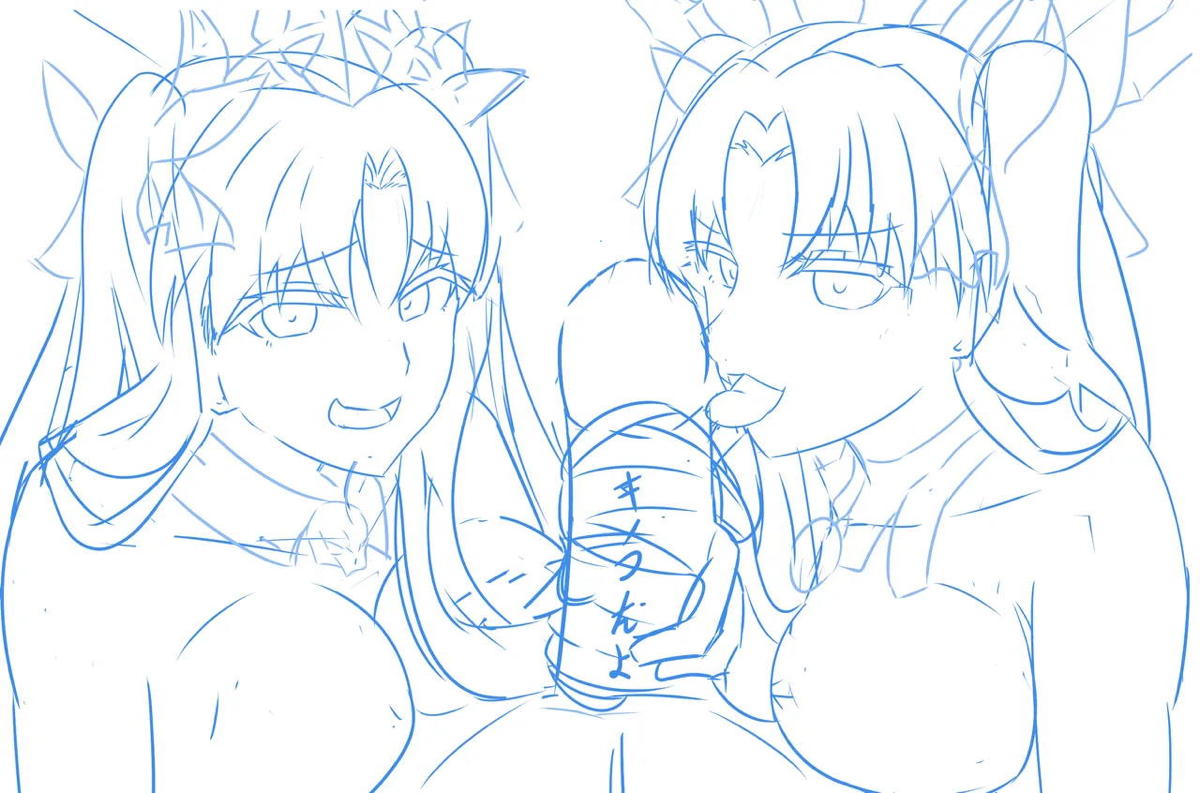 イシュタルとエレちゃんの髪コキ絵