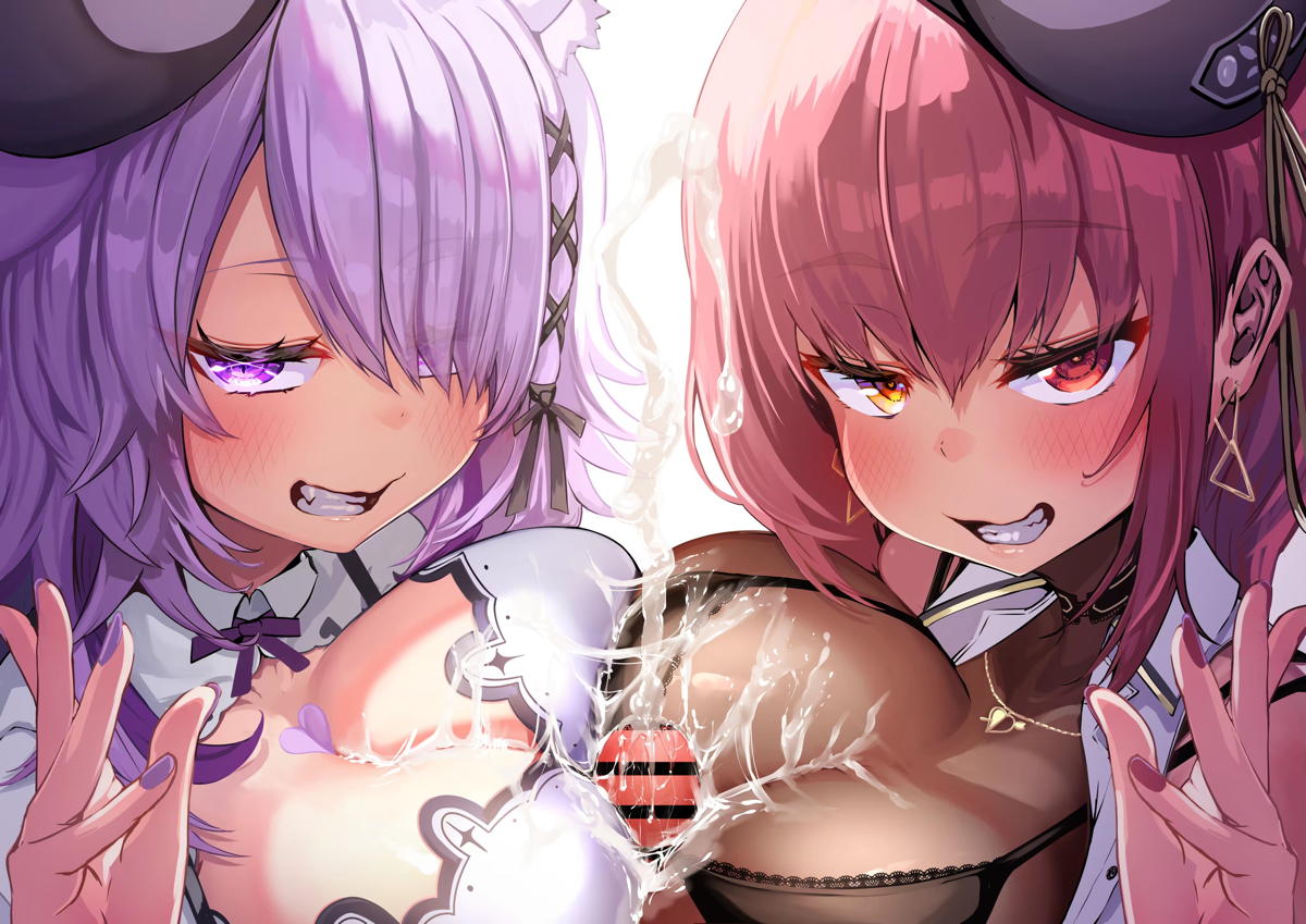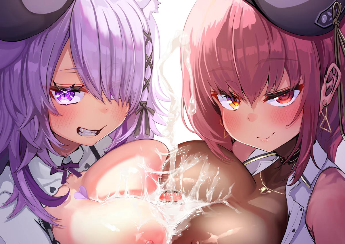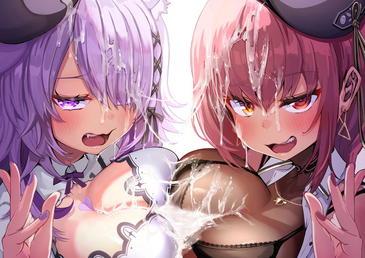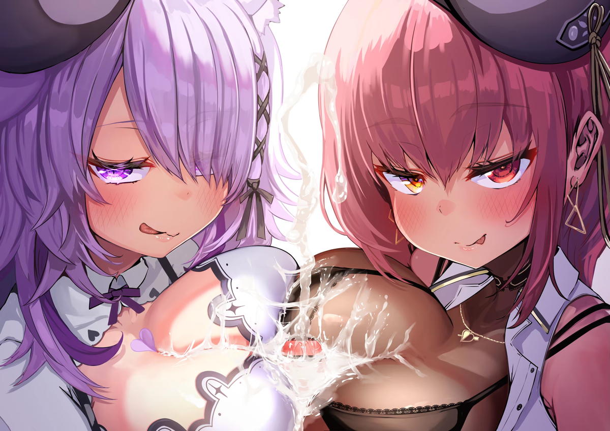 マリン&おかゆがWパイズリして顔射される!!